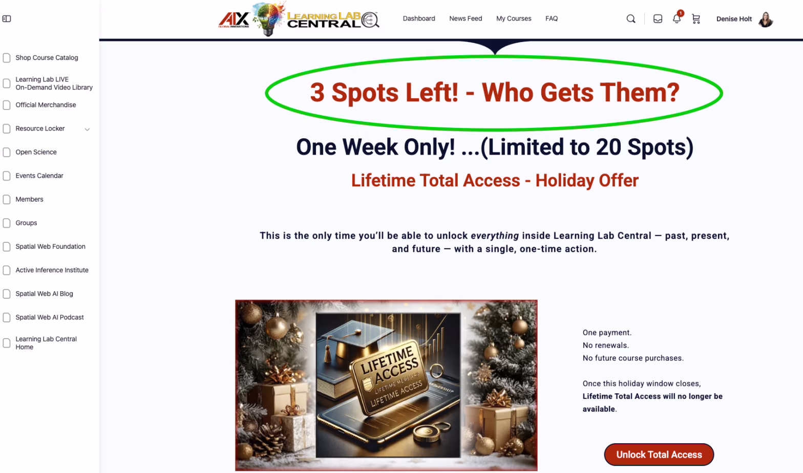 3 spots left to unlock EVERYTHING inside Learning Lab Central with LIFETIME Total Access to all courses, certification programs, Learning Lab LIVE On-Demand recordings – unlimited access to everything past, present, and future